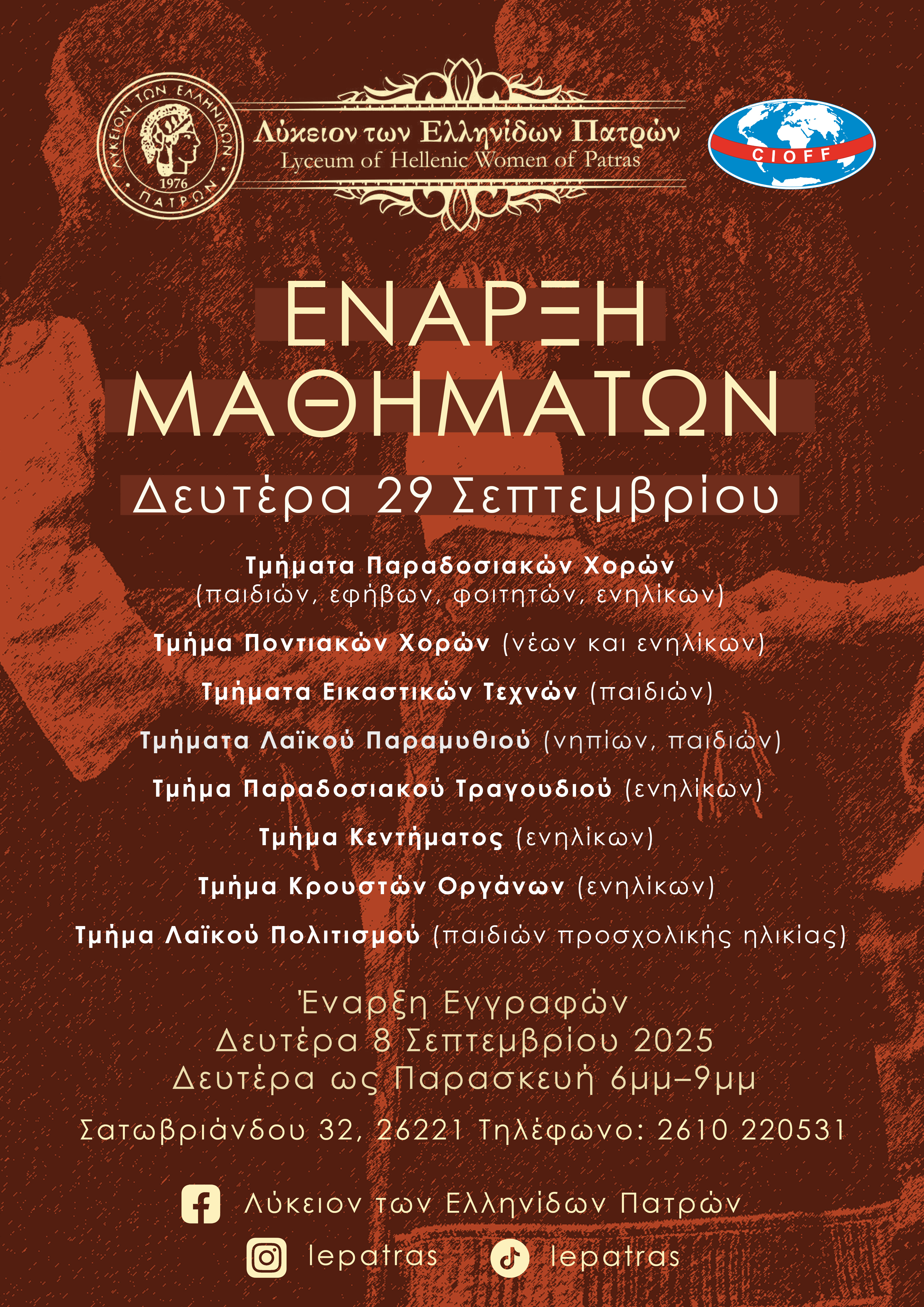 Το Λύκειο των Ελληνίδων-Παράρτημα Πατρών ετοιμάζεται πυρετωδώς να υποδεχτεί όσους και όσες αγαπάτε την λαϊκή μας παράδοση.