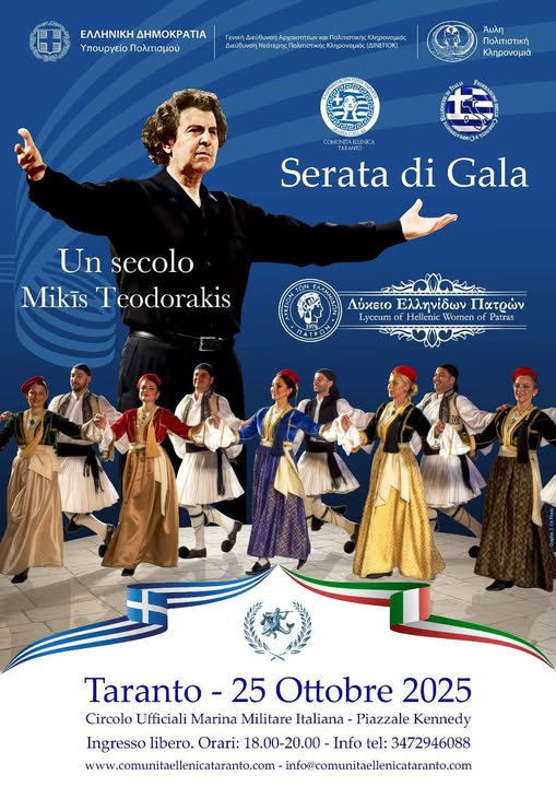 Η χορευτική ομάδα του Λυκείου των Ελληνίδων-Παράρτημα Πατρών ξεκινάει το ταξίδι της στα ελληνόφωνα χωριά της Κάτω Ιταλίας και συγκεκριμένα στον Τάραντα.Η Ελληνική Κοινότητα του Τάραντα "Maria Callas" μας τίμησε με την πρόσκληση της να συμμετέχουμε στις εκδηλώσεις που διοργανώνει με αφορμή τα 100 χρόνια από την γέννηση του Μίκη Θεοδωράκη.Οι δεσμοί μας με την Μεγάλη Ελλάδα είναι ισχυροί και χρονολογούνται από το 1981 όταν το "Λύκειον των Ελληνίδων-Παράρτημα Πατρών" πρώτο από όλους τους πολιτιστικούς συλλόγους με παρεμφερείς καταστατικούς σκοπούς και στόχους ταξίδεψε στην περιοχή. Πολυάριθμες οι επισκέψεις και οι συμμετοχές σε εκδηλώσεις που ακολούθησαν.Πάντα η φιλοξενία και τα φιλικά αισθήματα των ανθρώπων του τόπου μάς συγκινούν.Με μεγάλη χαρά περιμένουμε να τους συναντήσουμε πάλι.Ευχαριστούμε θερμά την ηγεσία του Υπουργείου Πολιτισμού και ιδιαίτερα τον υφυπουργό κύριο Ιάσονα Φωτήλα για την καθοριστική συμβολή στην πραγματοποίηση αυτού του ταξιδιού.